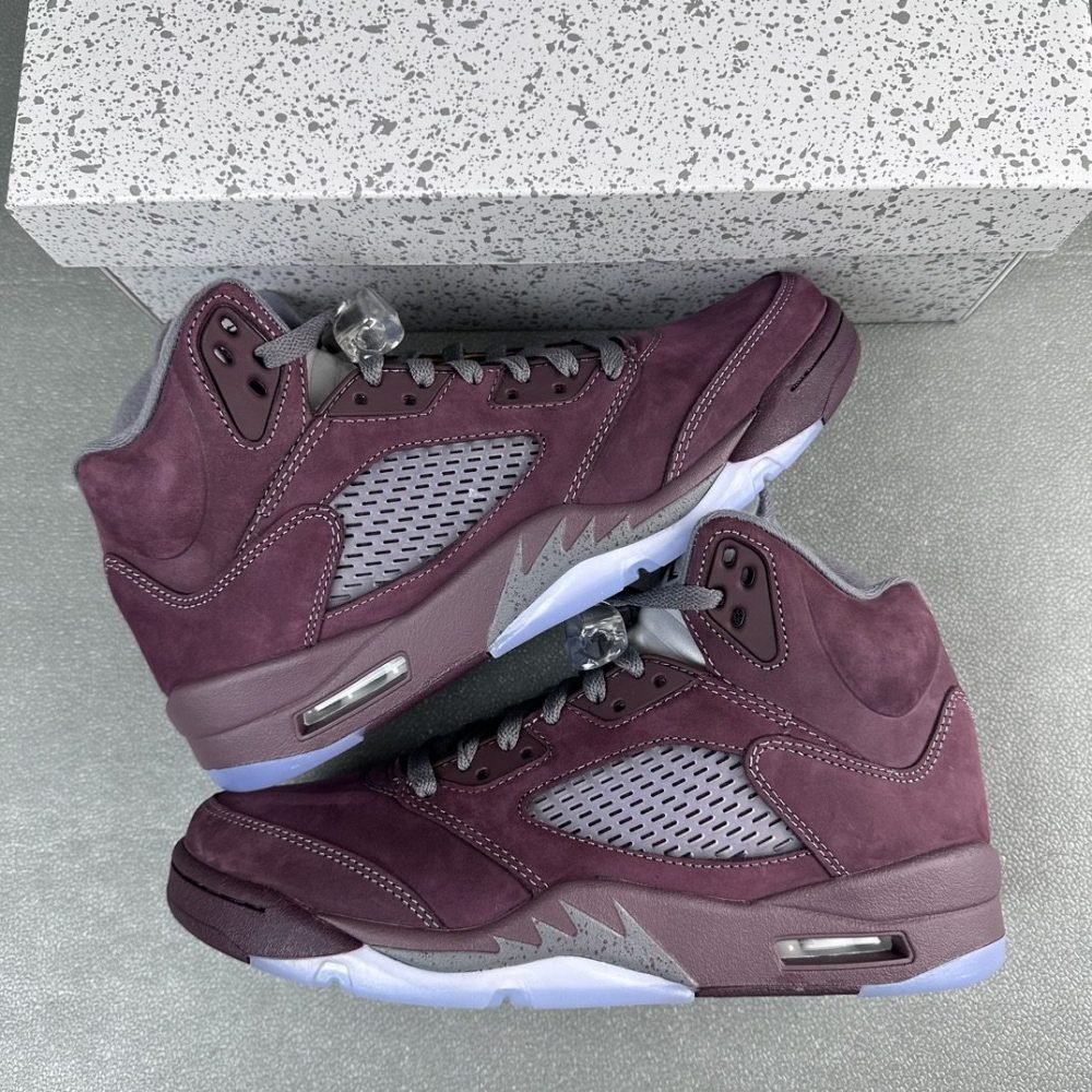 Introducing the sophisticated and elegant Air Jordan 5 Retro ‘Burgundy’ Rep, a classic sneaker with a refined twist. This exclusive edition features a deep burgundy colorway that exudes an air of luxury and timeless style.